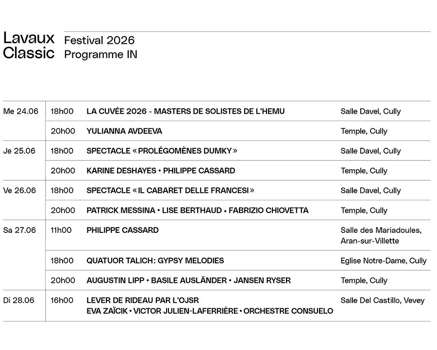 Retrouvez la revue de presse sous lavauxclassic.ch/presse
