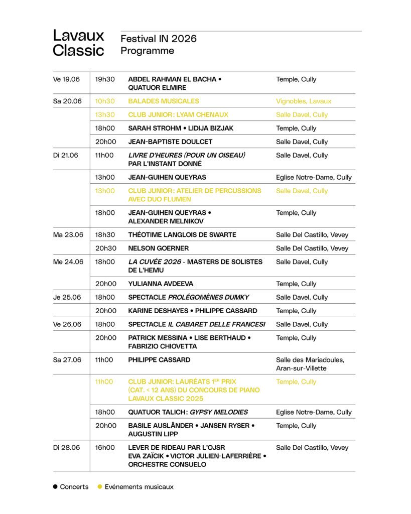 Retrouvez la revue de presse sous lavauxclassic.ch/presse